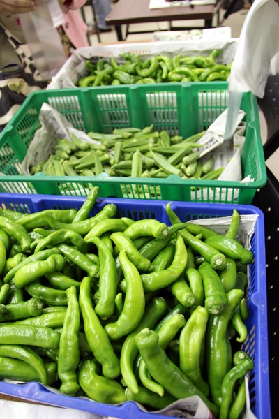 試食のおにぎりや、あまながピーマンやオクラなどもお土産にいただき、