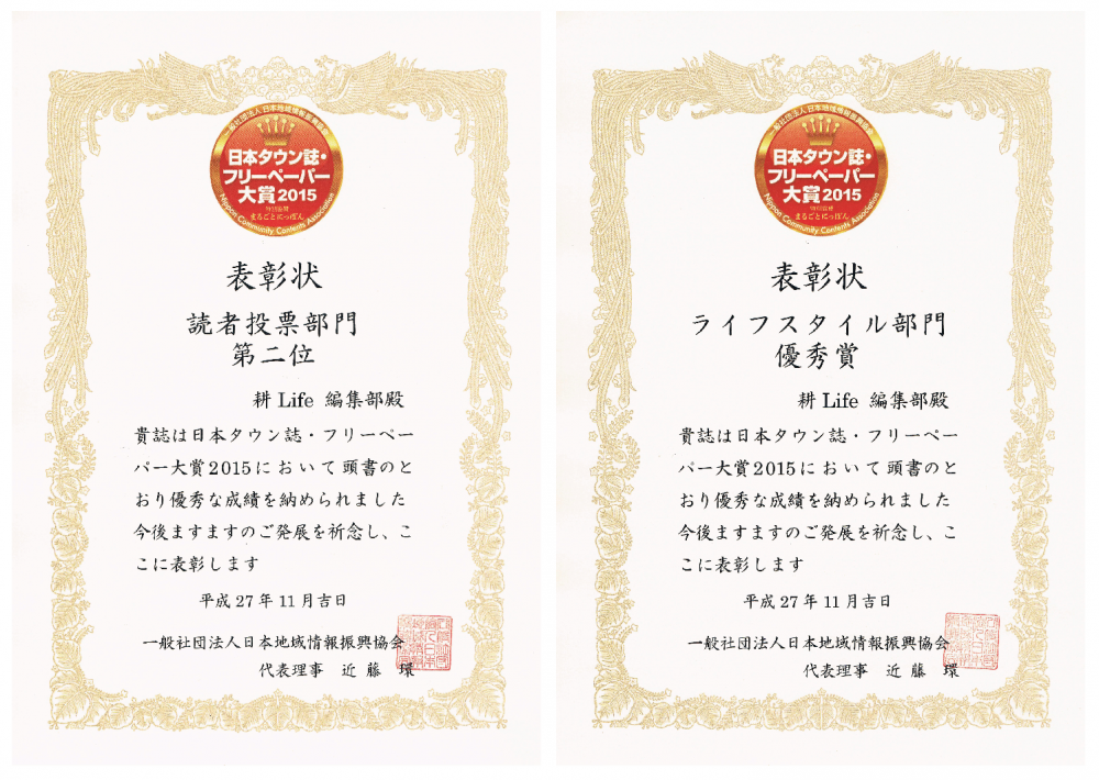 先日行われました日本タウン誌・フリーペーパー大賞2015表彰式にて