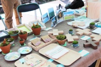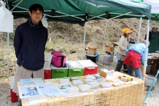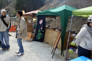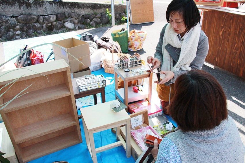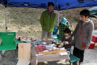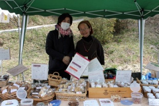 山里で自然の恵みに根ざしたなりわいで生きていきたい人、 まちに暮らしながら、山里とのつながりの中で生きていきたい人のための「豊森なりわい塾」の第3期生が中心となり、手作りの木工作品や写真のポストカード、手作り小物などを販売・展示していました。