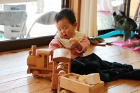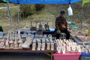 木のおもちゃがたくさん並んでいました。建築廃材を用いて作られているそうです。孫のために作ったことがきっかけとなり、たくさん作るようになったということです。自然な木の感じが良いな〜と思い、私も娘のためにショベルカーを買いました。