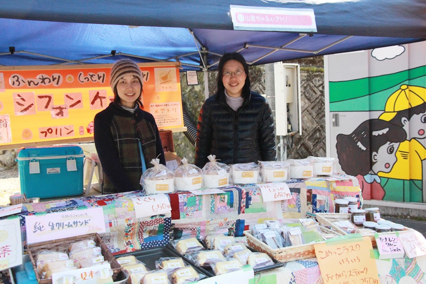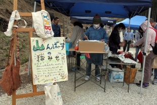 足助在住のおかあさんたちのグループ、やまんばーず。焼き菓子や手作りの布小物などが販売されていました。揚げたての春巻きおいしかったです。材料や調味料にもこだわって作られていました。
