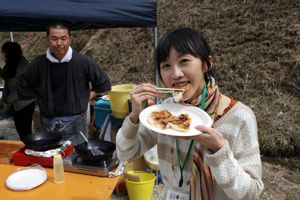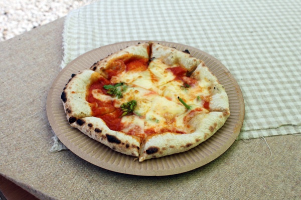 土窯で焼いたピザを販売していました。菜の花がのっていて春らしさを感じました。