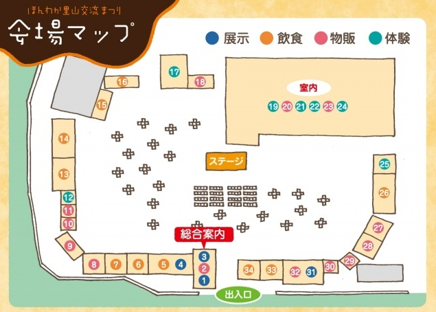 こちらが今回の会場図。総合案内所を通って、反時計まわりでご紹介していきましょう!
