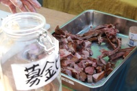色んなジャムを試食させていただきましたが、私が気になったのはヤーコンとショウガのジャム。ヤーコン?って何?と思い、実際にヤーコンを切ったものも食べさせてもらったのですが、大根とリンゴの間…?という食感と味でした。