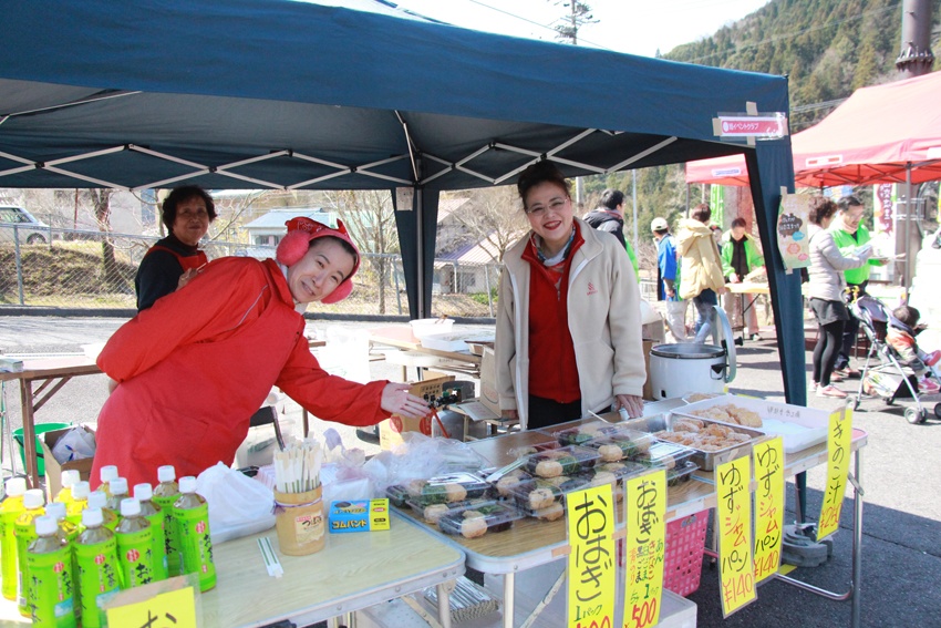 地元のお米・ミネアサヒを使用したおはぎや、旭で採れたゆずのジャムパン、きのこ汁など、元気なおかあちゃんたちがふるまっていました。